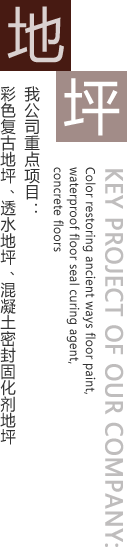 公司主要工程項目有彩色生態(tài)混凝土透水地坪,彩色復(fù)古地坪,藝術(shù)壓花地坪,混凝土密封固化劑地坪,環(huán)氧砂漿地坪,環(huán)氧防靜電地坪,環(huán)氧防滑紋理地坪,環(huán)氧玻璃鋼地坪,金剛砂耐磨地坪,水泥基彩色地坪,舊地面的修補,空鼓的治理等。